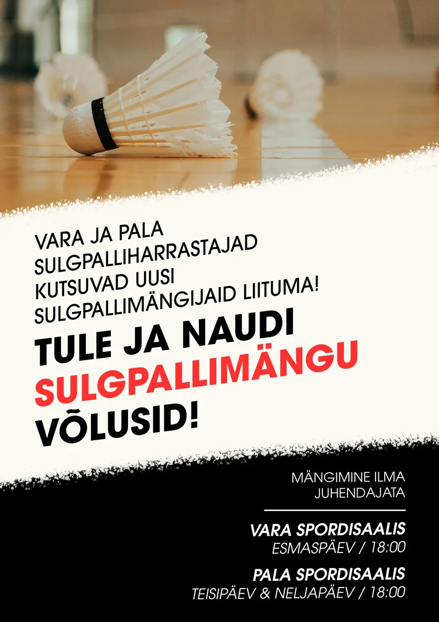13.12 | Jõuluturniir sulgpalli paarismängus 10.00 Pala spordisaal |